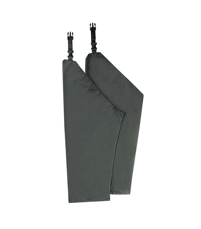 Helposti housujen päälle puettavat yhdenkoon oliivin väriset sadelahkeet säädettävällä ”klipsikiinnityksellä”.