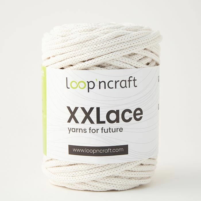 Loop’ncraft XXLace on 3,5 mm paksu, pehmeä makrameelanka mukavissa 250 gramman rullissa. Se on valmistettu kierrätyspuuvillasta ja sen valmistusmaa on Turkki. Lanka soveltuu mm. virkkaukseen ja makrameesolmeiluun. Huom. lanka on neulosmainen ja se ei hapsuunnu. Valmistaja suosittelee käsinpesua.