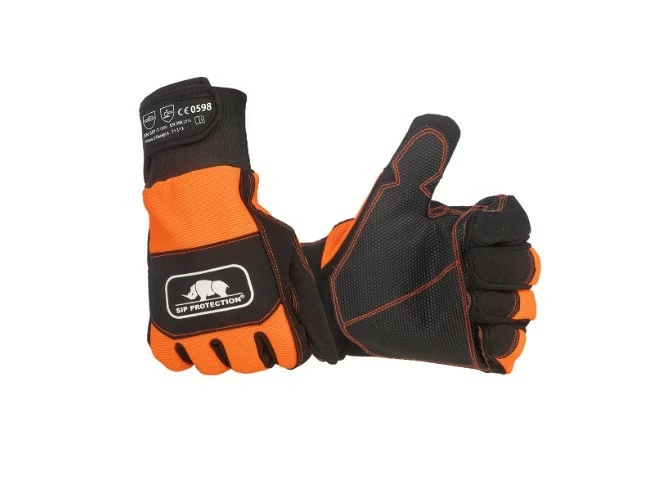 SIP 2XD4-käsinepari tarjoaa viiltosuojan molemmille käsille. Ne ovat ensimmäiset SIP:n luokan 2 käsineet. Kämmenen ja sormien vedenpitävän luistamattoman kumivahvistuksen ansiosta saat sahasta paremman otteen myös märissä sääolosuhteissa. Käsineet ovat EN381-7 design A -standardin mukaiset, mikä tarkoittaa, että käden takaosassa on suojapinta, joka suojaa molempia käsiä moottorisahan sattuessa onnettomuuden sattuessa.