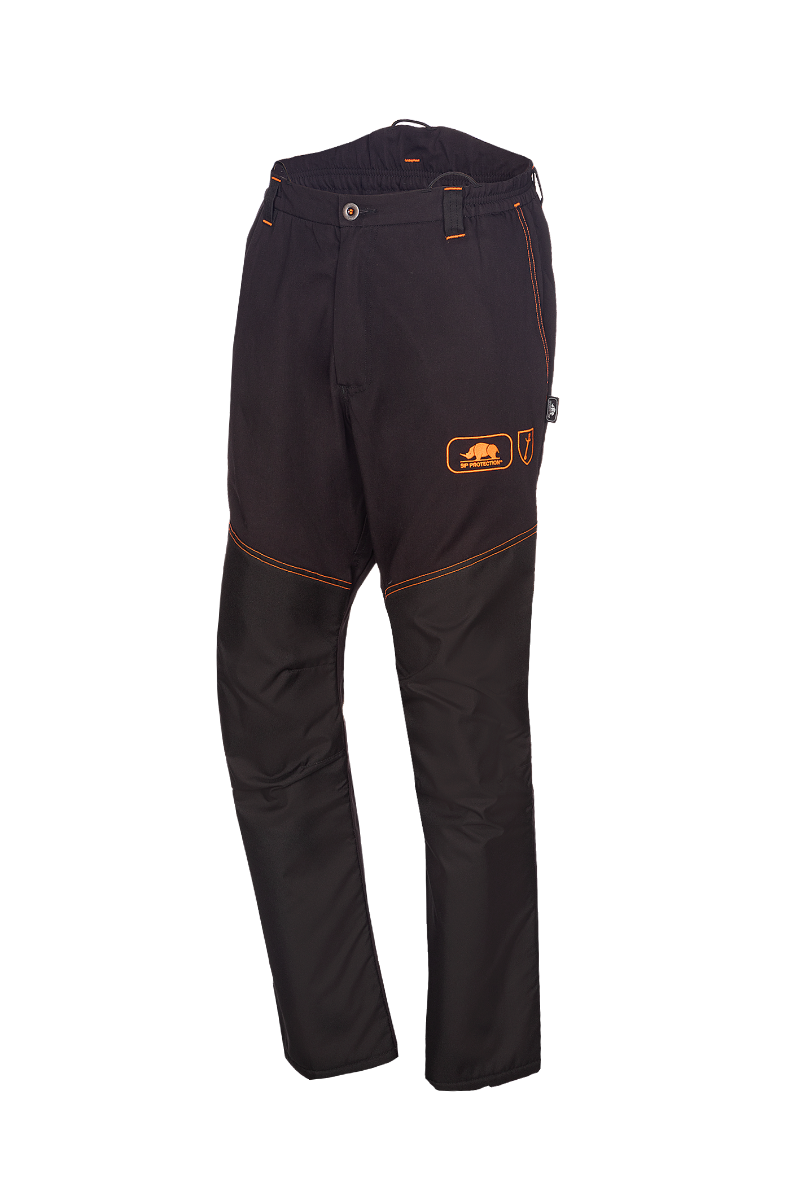 Kevyet raivaushousut, jotka suojaavat jalkoja kiinteän ja iskunkestävän pehmusteen ansiosta. Etuosassa hengittävä ja vedenpitävä Siopor® kangas.