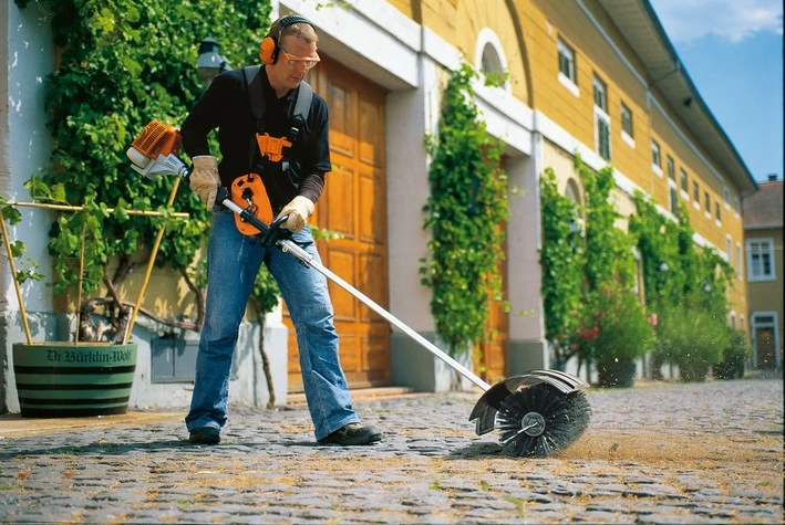 Poistaa lian syvistäkin urista ja uomista. Jäykät, vastasuuntaan pyörivät harjakset. Sisältää suojuksen.