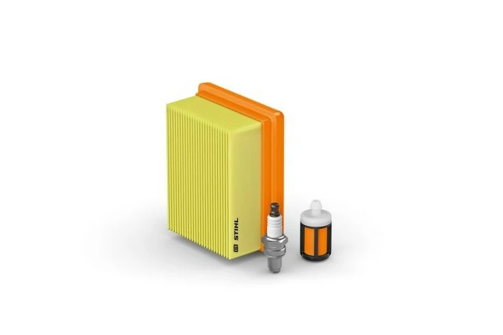 Käytännöllinen huoltosetti STIHL koneellesi sisältää sytytystulpan, ilmansuodattimen ja polttoainesuodattimen.