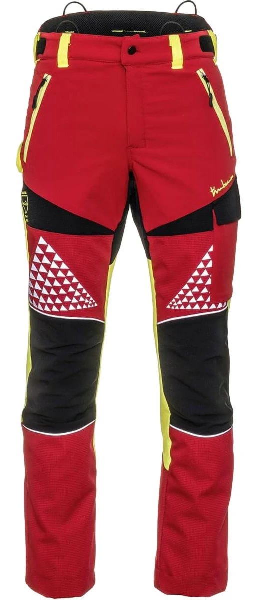 Housuissa on 4-kerroksinen Araneo viiltosuoja edessä. Elastinen ja tarralla säädettävä vyötärönauha takaa hyvän istuvuuden ja korotettu selkämys pitää kylmän loitolla. Edessä ja takana on heijastimet lisäämään työturvallisuutta. Yläosan materiaali on vettä- ja likaahylkivää ja alaosa on vahvistettu Ripstop-kankaalla. Polviosat on ergonomisesti muotoillut ja vahvistetut. Takana on pitkät tuuletusvetoketjut ja edessä vetoketjulliset sivutaskut. Housuissa on reisitasku velcro-tarralla sekä tasku matkapuhelimelle. Lahkeissa lumilukot ja vyötäröllä kangaslenkit olkaimille.